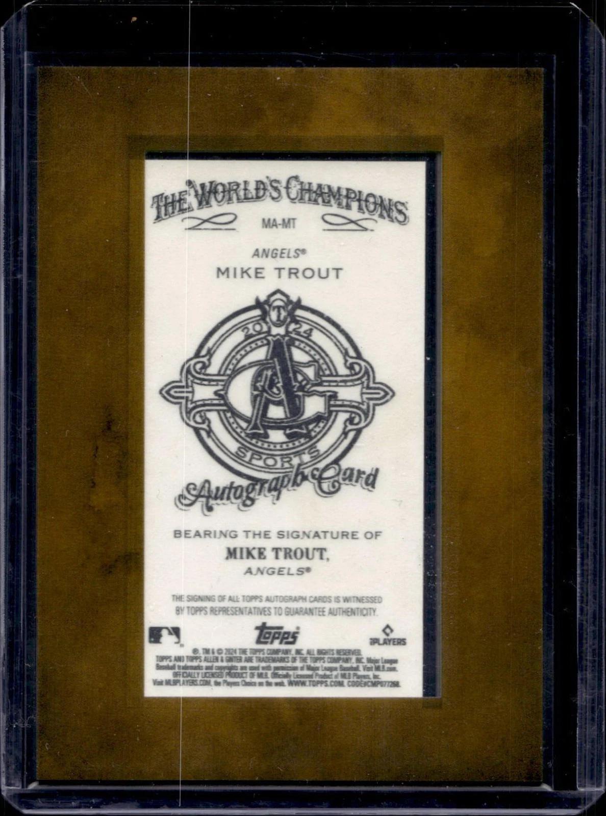 Add to wishlistCompareQuick view Baseball Singles, SinglesMike Trout 2024 Topps Allen & Ginter Framed Mini Blue Auto /50 Los Angeles Angels MA-MT $225.00 Add to cart Add to wishlistCompareQuick view Baseball Singles, SinglesMike Trout **2024 Topps Allen & Ginter Red Ink Auto /10 Los Angeles Angels MA-MT $300.00 Add to cart Add to wishlistCompareQuick view Baseball Singles, SinglesMike Trout 2022 Topps Stadium Club Chrome Red Refractor Auto /5 Los Angeles Angels PSA 10 $1,000.00 Add to cart Add to wishlistCompareQuick view Baseball Singles, SinglesTrea Turner 2023 Topps Definitive Red Laundry Tag Auto 1/1 Los Angeles Dodgers ARC-TT PSA 9 $900.00 Add to cart Add to wishlistCompareQuick view Baseball Singles, SinglesRonald Acuna Jr 2023 Topps Tier One Gold Advanced Stat Auto 1/1 Atlanta Braves SGC 9.5 $750.00 Add to cart Out Of Stock Add to wishlistCompareQuick view Baseball Singles, SinglesRod Carew 2000 Upper Deck Hitter’s Club Auto Minnesota Twins ROD $30.00 Read more Add to wishlistCompareQuick view Baseball Singles, SinglesPat Hughes Signed 2021 Topps Opening Day Card “HoF ’23” Chicago Cubs $50.00 Add to cart Add to wishlistCompareQuick view Baseball Singles, SinglesWyatt Langford 2025 Topps Chrome Cosmic White Hole Refractor Texas Rangers 189 $20.00 Add to cart Add to wishlistCompareQuick view Baseball Singles, SinglesFrank Mozzicato 2025 Panini Prizm Sensational Signatures Gold /10 Auto Kansas City Royals $20.00 Add to cart Add to wishlistCompareQuick view Baseball Singles, SinglesMatt Chapman 2025 Topps Chrome Black Nocturnal SSP San Francisco Giants NOC-30 $15.00 Add to cart Out Of Stock Add to wishlistCompareQuick view Baseball Singles, SinglesJarren Duran 2025 Topps Chrome Black Nocturnal SSP Boston Red Sox NOC-39 $20.00 Read more Add to wishlistCompareQuick view Baseball Singles, SinglesBrandon Sproat 2022 Panini Stars & Stripes USA Baseball Jersey Auto /250 SIL-BS $40.00 Add to cart Add to wishlistCompareQuick view Baseball Singles, SinglesJazz Chisholm 2021 Donruss Optic Optic Autographs Holo Miami Marlins OA-JC $15.00 Add to cart Out Of Stock Add to wishlistCompareQuick view Baseball Singles, SinglesAaron Judge 2024 Topps Chrome Pink Refractor New York Yankees 50 $10.00 Read more Add to wishlistCompareQuick view Baseball Singles, SinglesShohei Ohtani Christian Villanueva 2018 Topps Now AL NL RCs of Month Angels Padres 159 PSA 10 $120.00 Add to cart Add to wishlistCompareQuick view Baseball Singles, SinglesCade Horton 2025 Topps Silver Pack Black /10 RC Chicago Cubs U90C-72 $80.00 Add to cart PREVIOUS 1 2 3 4 5 6 7 8 9 10 NEXT