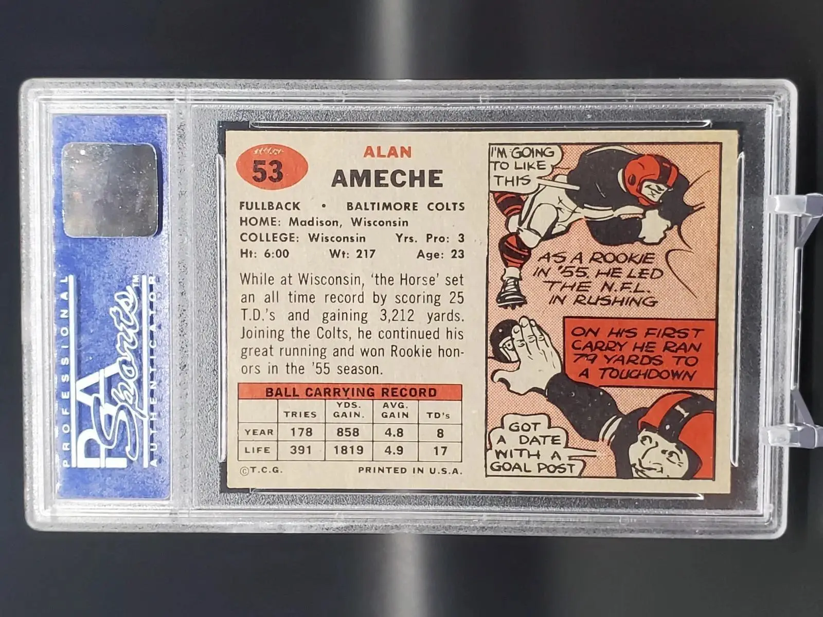 Add to wishlistCompareQuick view Football Singles, SinglesJack Tatum 1975 Topps Oakland Raiders 70 PSA 8 $40.00 Add to cart Add to wishlistCompareQuick view Football Singles, SinglesMick Tingelhoff 1975 Topps Minnesota Vikings 84 PSA 8 $45.00 Add to cart Add to wishlistCompareQuick view Football Singles, SinglesPaul Naumoff 1975 Topps Detroit Lions 74 PSA 8 $20.00 Add to cart Add to wishlistCompareQuick view Football Singles, SinglesVolney Peters 1957 Topps Washington Redskins 84 PSA 8 $40.00 Add to cart Add to wishlistCompareQuick view Football Singles, SinglesGary Knafelc 1957 Topps Green Bay Packers 45 PSA 8 $50.00 Add to cart Add to wishlistCompareQuick view Football Singles, SinglesEddie LeBaron 1957 Topps Washington Redskins 1 PSA 8 $150.00 Add to cart Add to wishlistCompareQuick view Football Singles, SinglesLindon Crow 1957 Topps Chicago Cardinals 91 PSA 8 $110.00 Add to cart Add to wishlistCompareQuick view Football Singles, SinglesBill Svoboda 1957 Topps New York Giants 153 PSA 8 $1,000.00 Add to cart Add to wishlistCompareQuick view Football Singles, SinglesBubba Smith 1975 Topps Oakland Raiders 33 PSA 7 $15.00 Add to cart Add to wishlistCompareQuick view Football Singles, SinglesAlan Ameche 1957 Topps Baltimore Colts 53 PSA 8 $70.00 Add to cart Add to wishlistCompareQuick view Football Singles, SinglesBill Van Heusen 1975 Topps Denver Broncos 267 PSA 5 $10.00 Add to cart Add to wishlistCompareQuick view Football Singles, SinglesDon Norton 1966 Topps San Diego Chargers 129 PSA 8 $100.00 Add to cart Add to wishlistCompareQuick view Football Singles, SinglesLarry Little 1972 Topps Rookie RC Miami Dolphins 240 PSA 9 $375.00 Add to cart Add to wishlistCompareQuick view Football Singles, SinglesJackie Smith 1972 Topps St. Louis Cardinals 161 PSA 9 (OC) $30.00 Add to cart Add to wishlistCompareQuick view Football Singles, SinglesGene Brito 1957 Topps Washington Redskins 48 PSA 8 $40.00 Add to cart Add to wishlistCompareQuick view Football Singles, SinglesJim Cason 1957 Topps Los Angeles Rams 143 PSA 8 $60.00 Add to cart PREVIOUS 1 2 3 … 17 18 19 20 21 22 NEXT