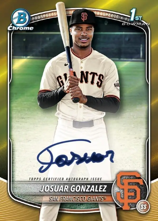 2025 Bowman Chrome kicks off with an electrifying lineup of top-tier prospects! Build the entire 100-card Base Set of top rookies and veterans and 100-card Chrome Prospect set! Find 2 Chrome Autograph cards per Hobby Box!