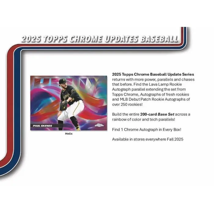 2025 Topps Chrome Baseball Update Series returns with more power, parallels and chases that before. Find the Lava Lamp Rookie Autograph parallel extending the set from Topps Chrome, Autographs of fresh rookies and MLB Debut Patch Rookie Autographs of over 250 rookies!