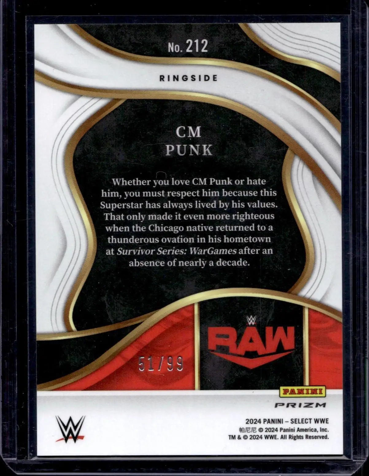 CM Punk 2024 Panini Select WWE Red Wave Prizm /99 212