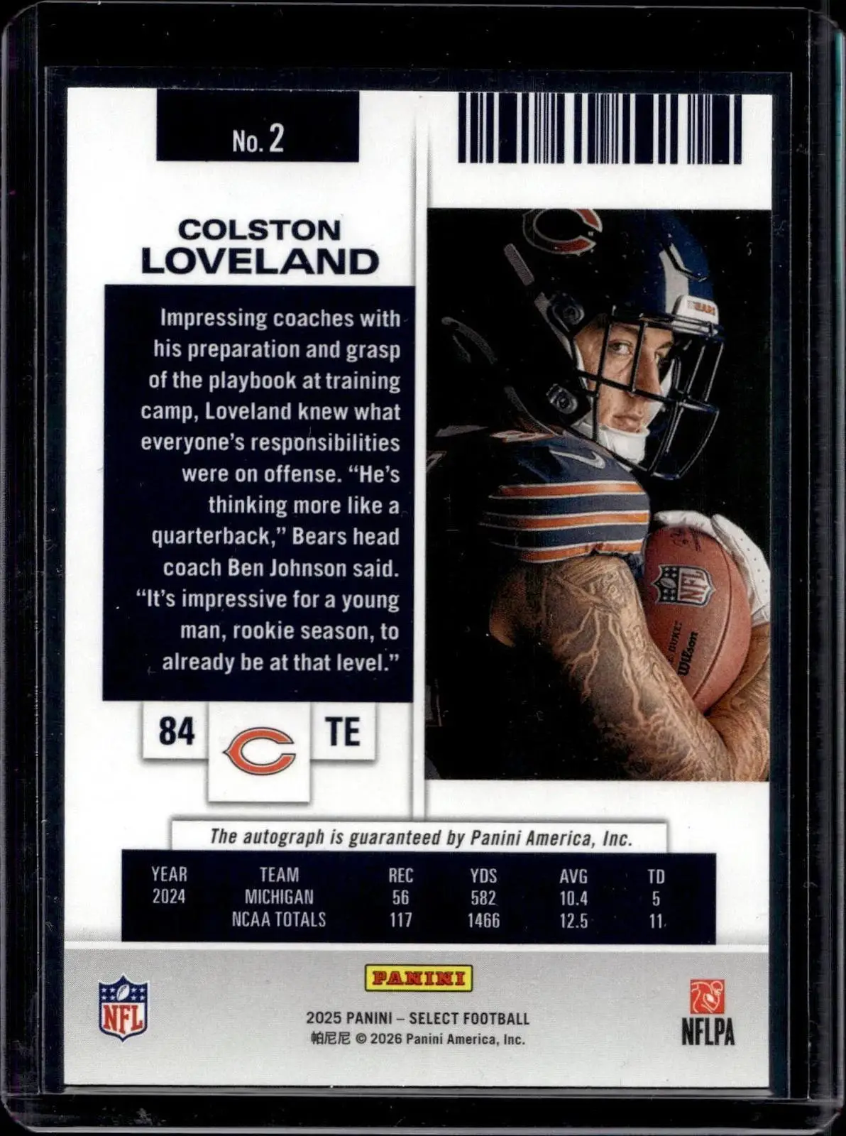Colston Loveland 2025 Panini Select Contenders Rookie Ticket Auto Bears 2