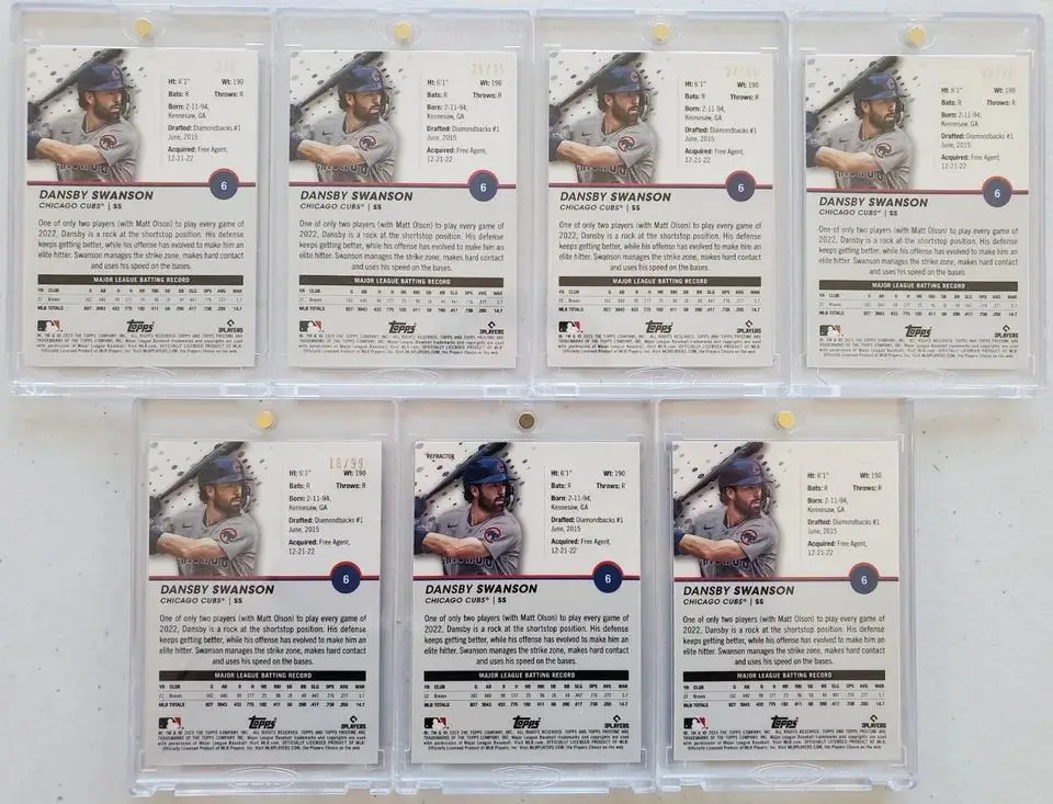 Dansby Swanson 2023 Topps Pristine Refractor Mini Rainbow Chicago Cubs 6 7 Cards