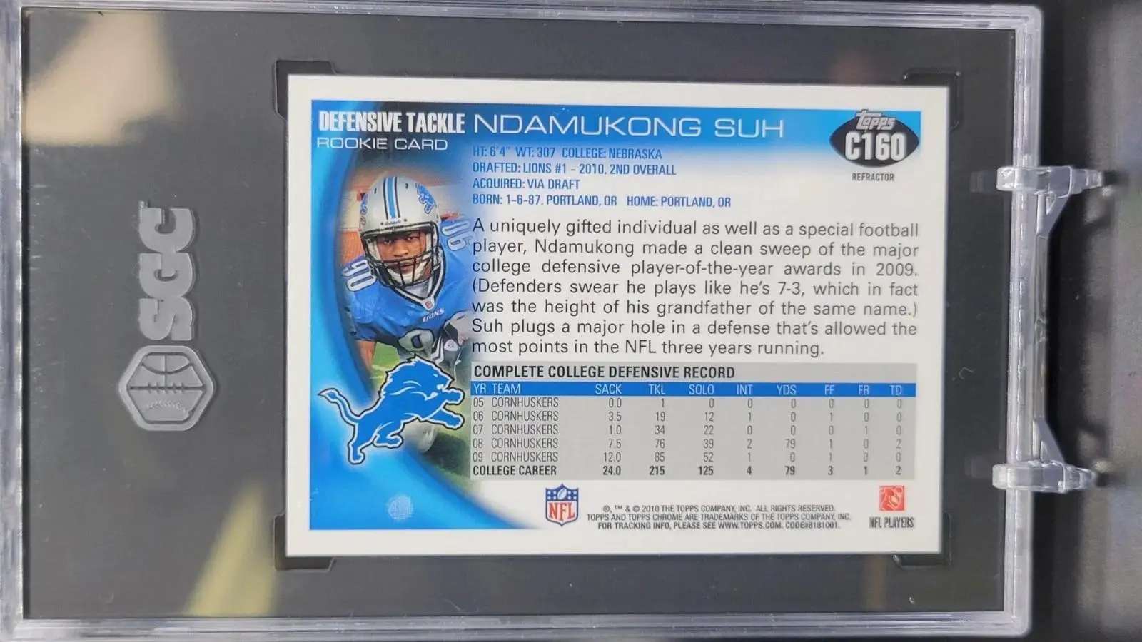 Ndamukong Suh 2010 Topps Chrome RC Detroit Lions C160 SGC 9.5