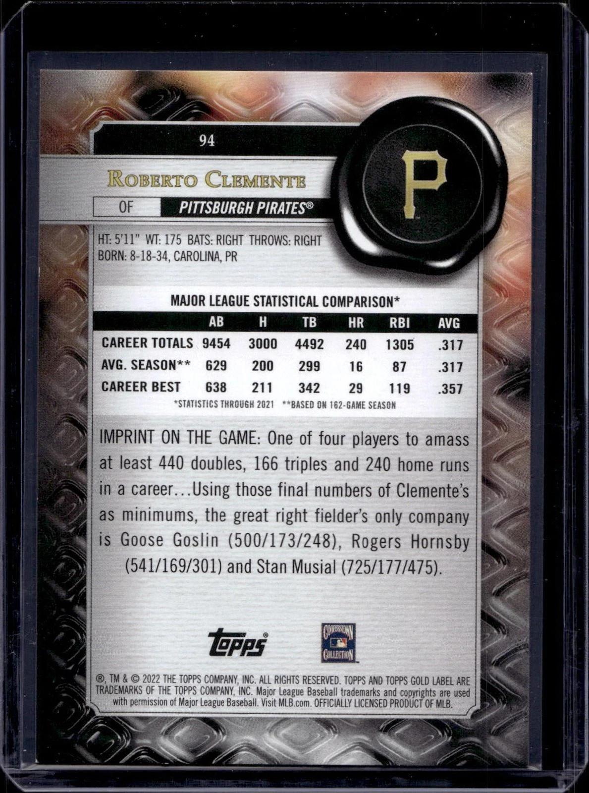 Roberto Clemente 2022 Topps Gold Label Class 1 Red /75 Pittsburgh Pirates 94