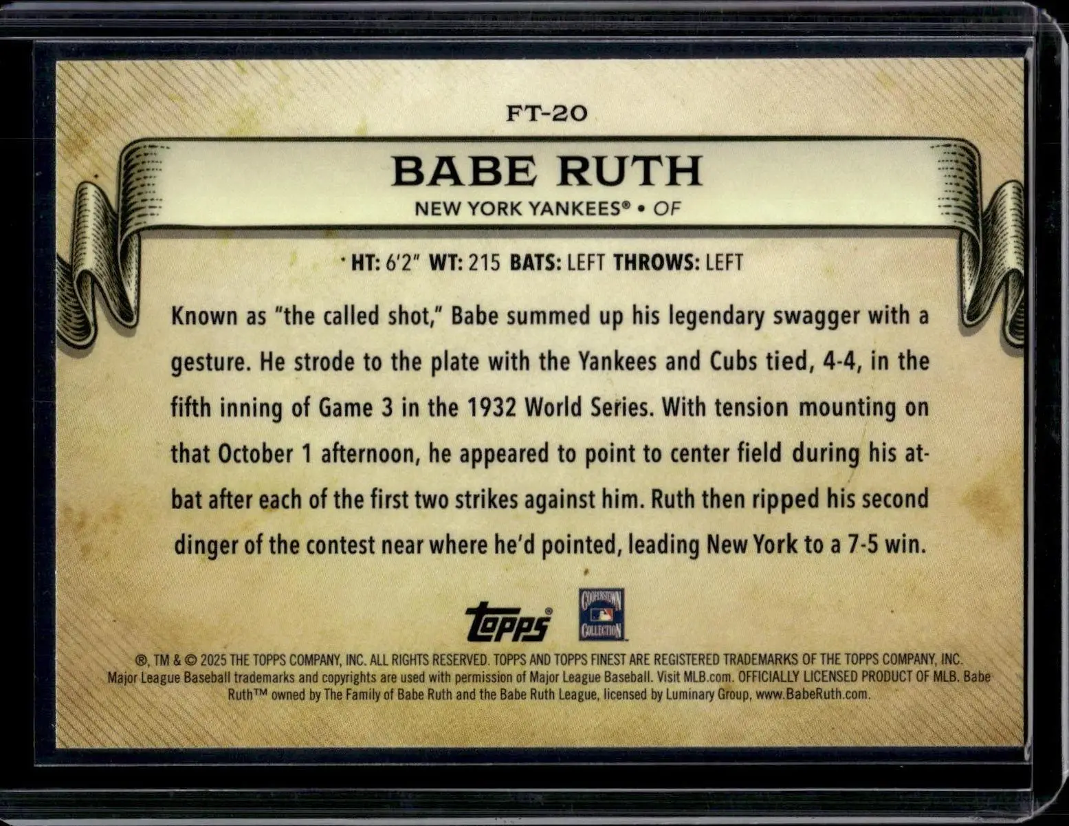 • Babe Ruth 2025 Finest Timelines Green Refractor /75 New York Yankees FT-20