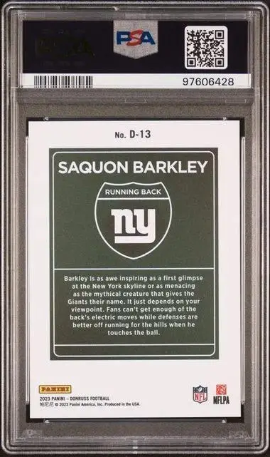 • ***2023 Saquon Barkley Donruss  Downtown New York Giants D-13 PSA 10